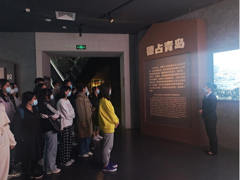 随后全体党员同志进入了博物馆和炮台遗址进行参观。讲解员首先讲解了“誓死力争,还我青岛”浮雕,让党员同志们对百年前学子的爱国情怀感到动容。随后,通过一张张照片、画像,同学们学习了从清同治四年(1865年)青岛设东海关分关至1949年6月青岛解放的历史,包括“公车上书”、五四运动、日德战争等著名事件,回顾了德占、日占时期青岛的发展与动荡。