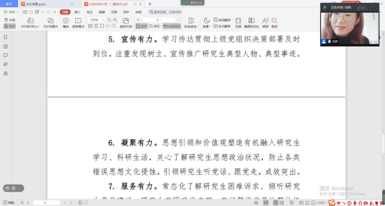 为进一步规范党支部的组织生活,提高支部党员的理论学习水平,深入推进“研究生样板党支部”的培育创建工作,确保党员队伍放假“不掉线”。1月28日下午,MILE米乐集团研究生第一党支部通过腾讯会议线上召开支部大会,集中组织学习了“灯塔大课堂”第十七讲,并就“研究生样板党支部”的创建工作作了动员,研究生第一党支部全体党员、学工办老师沈娇及部分入党积极分子代表参与了本次会议,会议由党支部书记韩一鸣主持。