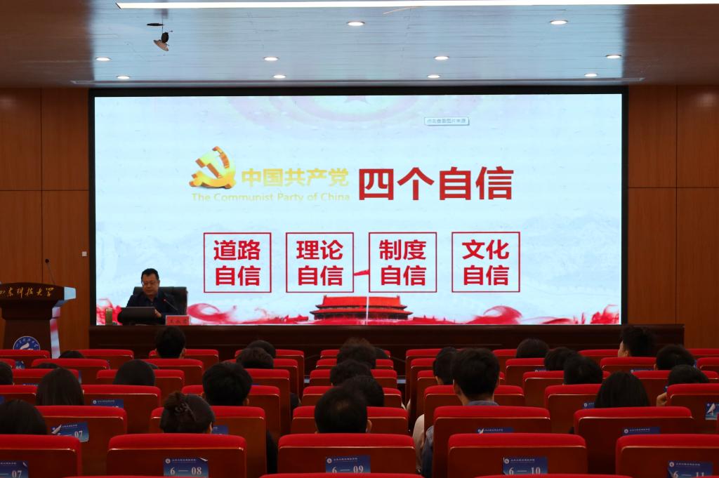 5月6日,校党委统战部常务副部长、台港澳工作办公室主任王永君以《坚定“四个自信”,对党绝对忠诚》为主题讲授党课。王永君从国际GDP排名变化以及我国制造业蓬勃发展的现状切入,通过一系列经典案例,多层次展现了新中国成立以来我国在各领域取得的重大发展成就,阐述了中国之成就带来的自信。他指出,学员们要坚定理想信念,坚守共产党人精神追求;要坚定文化自信,强化文化担当,推动中华文化繁荣兴盛;要加强党性修养和党性锻炼,永葆共产党人的政治本色。