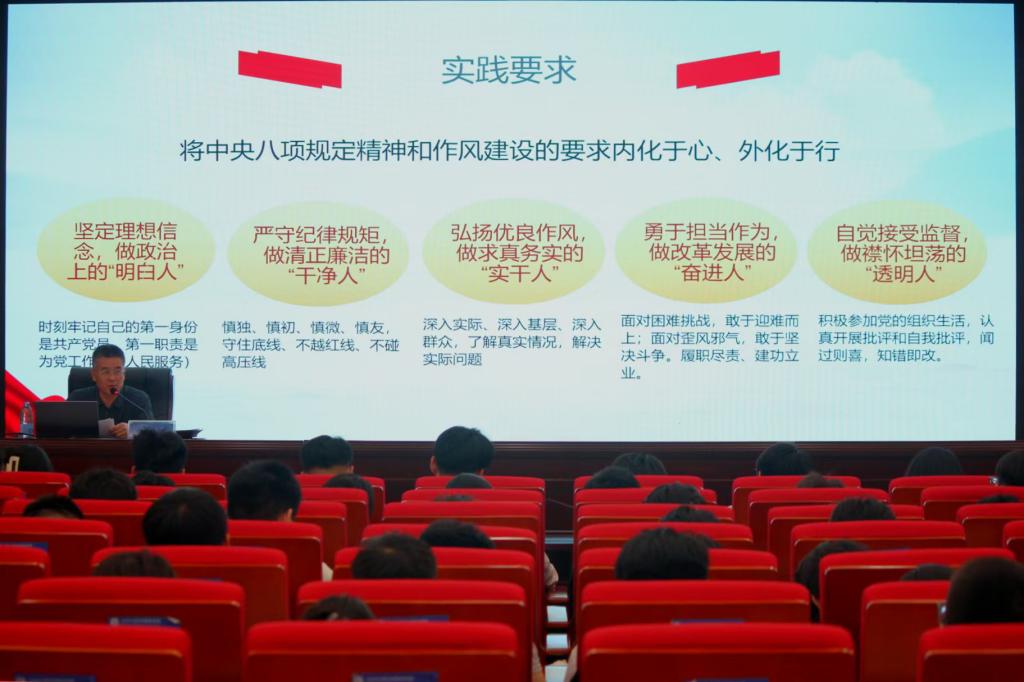 6月19日,学院党委书记宋西路在J15-136报告厅为全体毕业生党员讲授了一场以“坚守八项规定精神,加强作风建设,勇担时代使命”为主题的专题党课。宋西路围绕深刻认识中央八项规定精神的时代内涵与核心要义、准确把握加强作风建设的根本目标要求、在新征程中深化落实中央八项规定精神的实践要求、毕业生党员践行中央八项规定精神的行动路径等方面,对中央八项规定进行了系统讲解。宋西路殷切嘱托全体毕业生党员要牢记党员身份,离校不离学,持续深入学习党章、党规、党纪,特别是关于作风建设的重要论述和中央八项规定及其实施细则精神,在新征程上笃学力行、挺膺担当,将个人理想融入党和人民事业,争当推进中国式现代化的先锋力量。