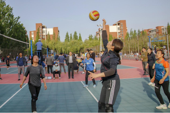 一声哨响,教职工们开始发力,起跳、发球、拦网、扣球,活力四射,每一次精彩传球与得分都引来欢呼阵阵,加油助威声此起彼伏,队员们个个精神抖擞,团结合作,配合默契,气氛热烈,赢得围观教职工阵阵喝彩。在比赛中,每一次的赢球,大家都互相拍掌,鼓舞士气,而每一次的失分,队员们互相拥抱,给予彼此鼓励。