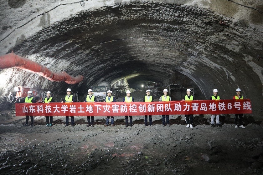 我校地下工程灾害防控创新团队青岛地铁项目课题组扎根现场,不畏艰难,勇于创新,踏实做事,工作精神和业绩得到地铁集团书面表扬,得到院士专家们的高度认可,受到多家媒体宣传报道,切实践行了将论文写在祖国大地上,为新区、岛城及国家地下空间开发建设贡献山科大力量。