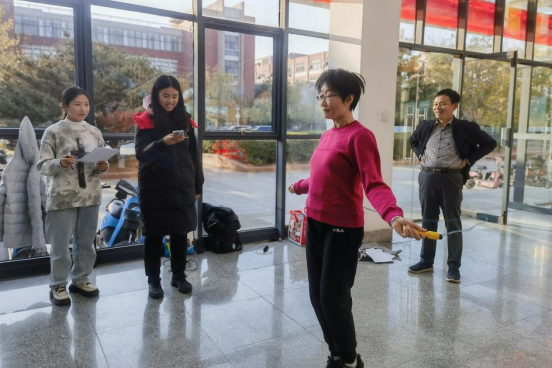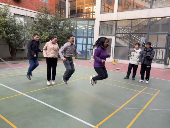 本次趣味运动会设置了“运输大队”“欢乐跳大绳”两个团体项目,以及“飞镖比赛”“乒乓球掷准”“30秒跳绳”“趣味保龄球”等四个个人项目,既有需团队密切配合的,又有展现个人风采的,获得了学院教工的一致好评与喜爱。“运输大队”4人为一组,起点和终点各2人,起点人员用筷子夹着乒乓球跑到终点将筷子和乒乓球传给终点人员,终点人员再用筷子夹着乒乓球跑到起点,如此往返两次,以时长计优胜。小小一颗乒乓球让参赛人员紧张万分,凝心屏气,也牵动了观赛人员的心神。“欢乐跳大绳”由工会小组老师共同完成,展现了彼此间的默契配合和团结进取。“飞镖比赛”“乒乓球掷准”“30秒跳绳”“趣味保龄球”现场也是精彩纷呈,加油声、喝彩声此起彼伏,学院教工展现了讲台外的别样风采。