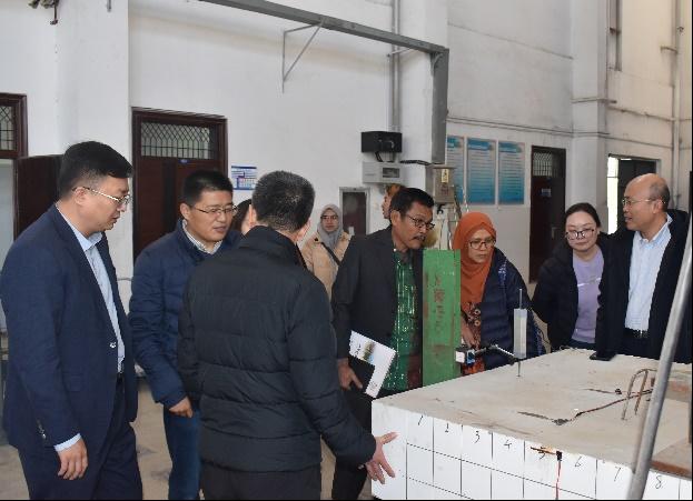 座谈结束后,印尼巨港斯里维贾国立理工学院一行参观了米乐官网结构实验大厅、青岛市海洋土木工程材料与结构重点实验室等相关实验室。