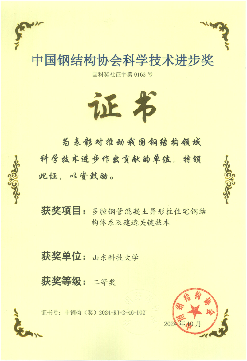 近日,中国钢结构协会成立40周年大会暨2024中国钢结构大会在北京隆重召开,会上揭晓了2024年度中国钢结构协会科学技术奖评选结果。米乐官网王来教授牵头的“多腔钢管混凝土异形柱住宅钢结构体系及建造关键技术”项目荣获科学技术进步奖二等奖(第二完成单位)。