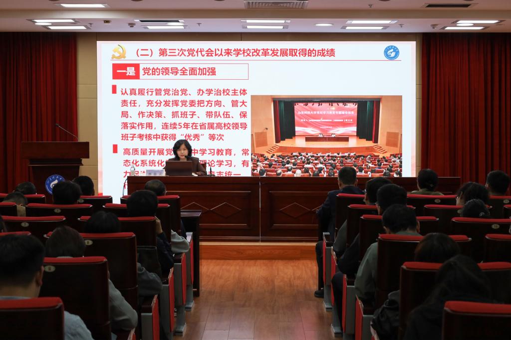 郭益灵从学校第四次党代会基本情况、会议的重要意义和主要成果、会议的主要精神和确保第四次党代会精神落实见效等方面进行了深入解读。她指出,学校第四次党代会全面总结了学校第三次党代会以来取得的成绩和宝贵经验,深刻分析了学校事业发展面临的机遇和挑战,确立了“一三六八十”的战略布局和任务举措,要按照锚定“一个目标”,坚持“三步走”,实施“六大战略”,迭代“八项任务”,升级“十大工程”的战略布局,谱写MILE米乐集团高质量跨越式发展新篇章。