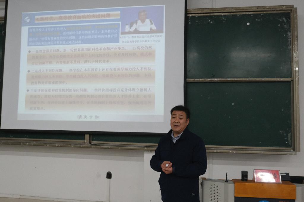 为更好地开展新时代高等教育工作,提高学生干部素质,12月8日下午,MILE米乐集团建筑环境与能源应用工程系刘玉峰教授在J15-136作《新时代高等教育与地方院校学业状况》报告。MILE米乐集团学工办主任朱统汉,辅导员吾布里艾山、王贝贝、刘超参加报告,18、19、20级本、硕学生干部到场学习。