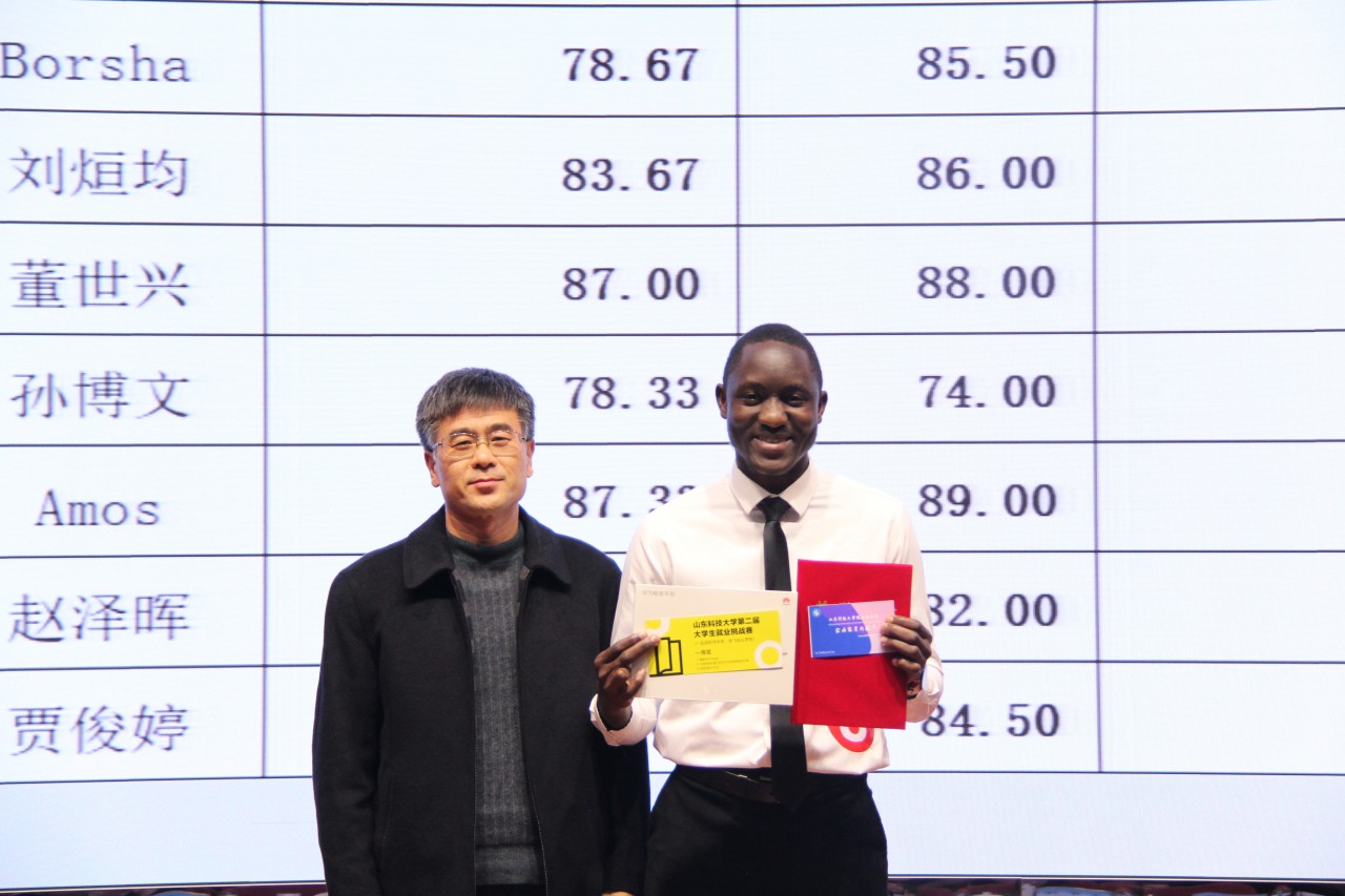 最终荣获本次比赛一等奖的是来自国际交流学院的Amos,荣获二等奖的是赵泽晖、贾俊婷、董世兴、刘烜均、Borsha,荣获三等奖的是孟祥发、张志远、赵鑫源、王文静等。另外,根据比赛的网络投票环节,MILE米乐集团的苏彪、张志成获得“人气奖”,外语学院的白照众获得“最具人气奖”。颁奖环节后,优创(青岛)数据技术有限公司向刘煊均颁发了“面试直通卡”, 青岛新东方前途出国咨询有限公司更是为赵鑫源发出了宝贵的“offer”。