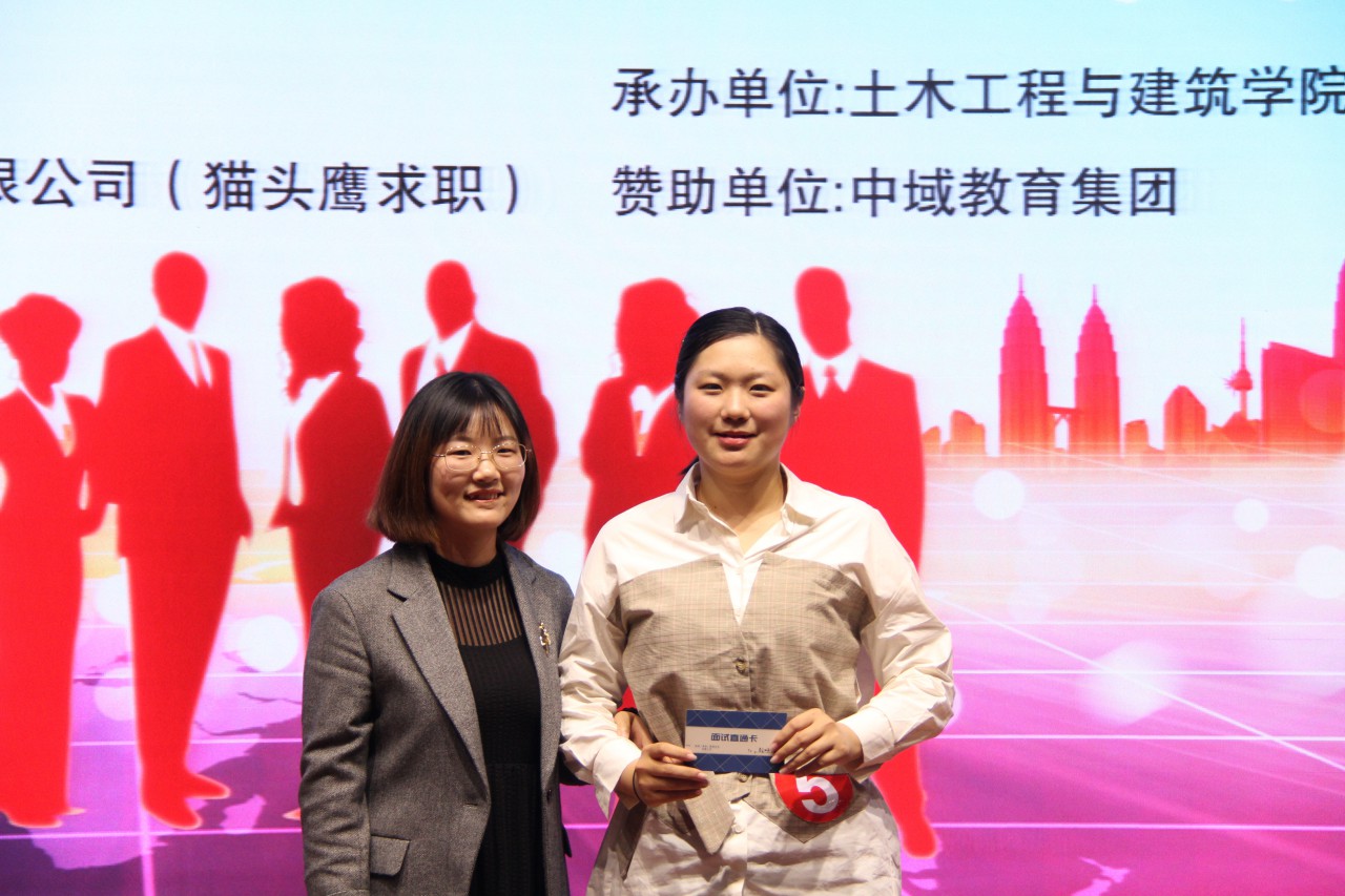 经过初赛的简历制作、复赛的无领导小组面试和预决赛的角逐后,来自材料学院的赵泽晖、王文静、孟祥发,国际交流学院的Amos、Borsha,文法学院的贾俊婷、刘烜均,MILE米乐集团的赵鑫源、董世兴,经管学院的孙博文等10名同学进入决赛。一段回顾比赛历程和介绍比赛选手的精彩VCR短片播放完毕后,进入紧张的比赛环节。本次比赛分为竞职演说环节与面试环节。竞职演说环节中,选手们在短短的四分钟时间内结合自我介绍和对竞聘职业的认知,向评委们展示了他们将如何追逐理想职业。面试环节,面对HR评委的现场提问,选手们更是表现出来过硬的心理素质与超强的应变能力,赢得了现场观众的阵阵掌声。接下来,评委根据选手在两个环节中的具体表现给选手提出切实而宝贵的建议。比赛结束后,猫头鹰求职张凯元总经理对选手们的表现进行了点评,中域教育集团宋波总监对大赛进行了总结。