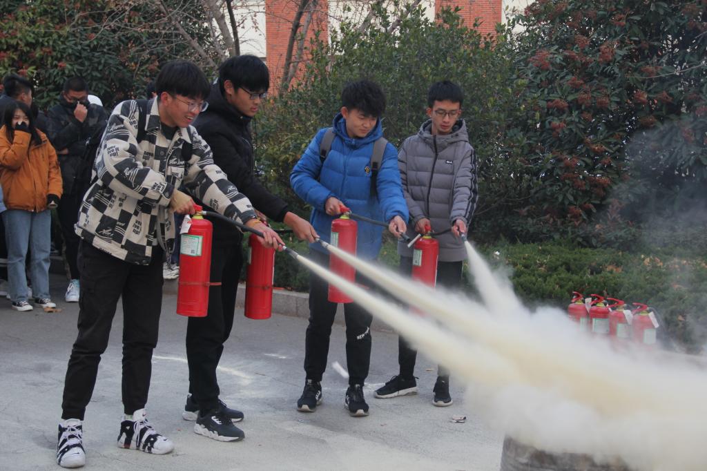 培训会开始前,于娜发表动员讲话,她指出秋冬时节正是火灾高发期,一旦发生火灾,造成的不仅仅是经济上的损失,甚至可能是人员伤亡,她强调同学们要从思想上提高对防火的重视,规范日常行为,养成良好的生活习惯,学会应急自救措施,妥善应对火灾,并表示希望同学们能从演练中学到更多消防知识。赵洋指出火灾问题不容忽视,防火准备不可或缺,同学们在日常生活中要有一个意识、三种本领,有遇到火灾先报警的意识,掌握如何防范火灾、如何扑灭初期火灾、如何从火场安全逃生这三个本领。同时赵洋还向同学们讲解了干粉灭火器的使用方法,同学们认真聆听。实践是获得一项能力必不可少的环节,有了老师的讲解作为基础,接下来,同学们在学校保卫处老师的带领下,有条不紊地开展了演练活动,亲身体验了灭火的过程。