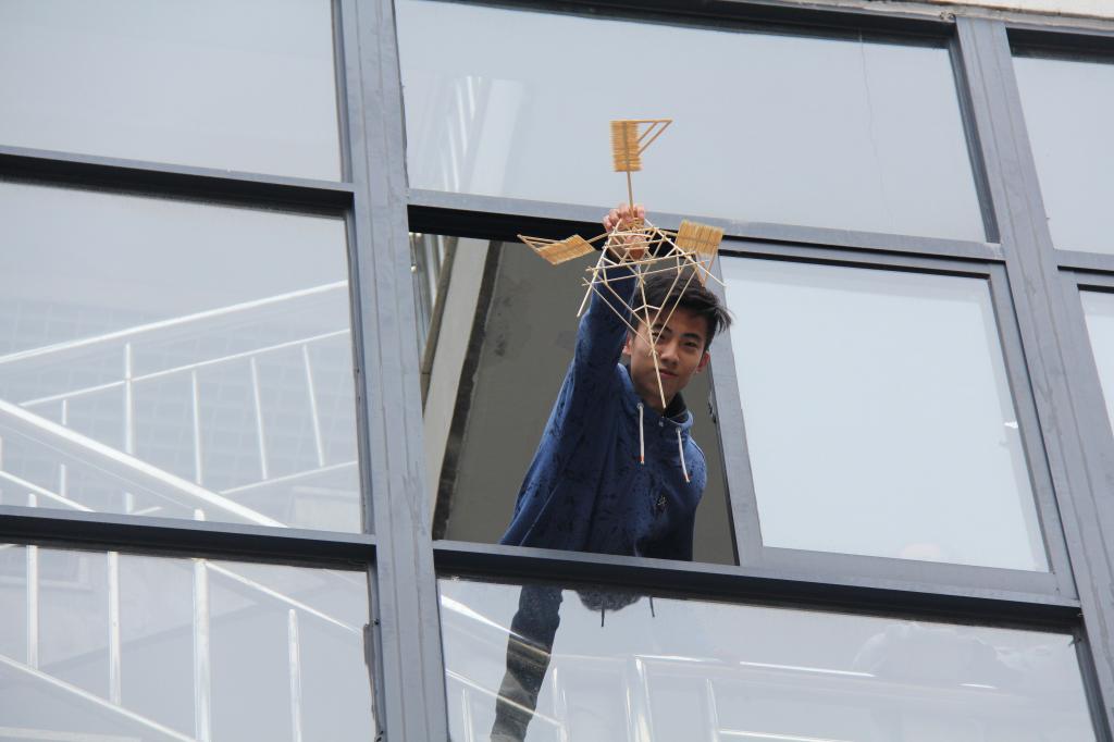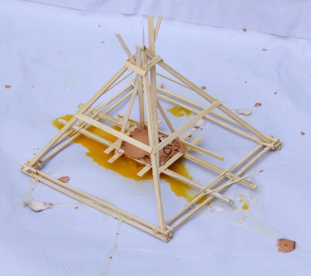 比赛最大的吸引力来自新颖有趣的赛题——高空护蛋。该赛题要求各参赛队根据主办方提供的竹条、牙签、胶水、鸡蛋等材料制作一个护蛋结构(要求鸡蛋可视度在40%以上,结构类型不限),以鸡蛋从15米高空落下后的完好程度和结构的稳定性为评分标准。比赛主要分为三个阶段:4月24日18:00-22:00,MILE米乐集团科技学习部同学为270个参赛队发放了比赛材料;25-26日,各参赛队自由制作模型,他们不分昼夜地设计和制作模型、进行模拟实验,不断进行修改和完善;27日为模型检测。模型检测当天,参赛团队签到后,工作人员对结构进行称重(要求模型不得超过220g),随后评委从外观的美感程度、结构的稳定程度进行打分,打分完毕,选手自行在15米左右的高空将模型扔下,最后评委老师再次根据鸡蛋和模型破损程度打分。