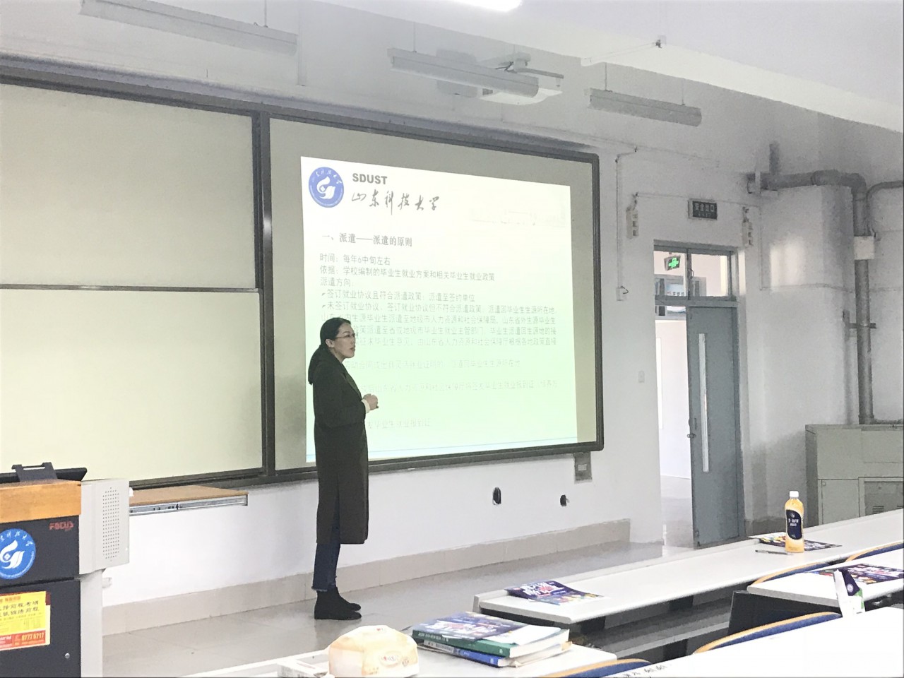 根据会前征集的问题,刘晶老师详细介绍了全日制研究生与非全日制研究生的异同、调剂注意事项、拟二战考研同学可能面临的问题、校园招聘会的近期情况及毕业离校前的主要事项安排等。然后,刘老师详细演示了山东省高校毕业生就业信息网的相关功能,重点讲解了派遣、报到证、档案、改派、二次派遣等问题,帮助同学们明确了就业流程和方法。最后,刘晶老师对毕业班同学提出了几点希望,她希望同学们以“时不我待”的紧迫感科学合理规划大学最后的时光,做好学业计划、阅读计划、锻炼计划和个人成长计划,提升能力素质、优化性格品性、拓展眼界视野,为顺利步入社会打下坚实基础。