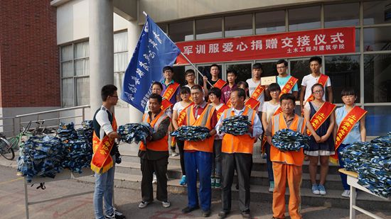 回收工作结束后,青协举办了军训衫爱心捐赠交接仪式,青岛环卫局派来了工作人员与青协进行了交接,并向青协表达了深深地谢意。本次军训衫回收活动也达到了预期的目的。