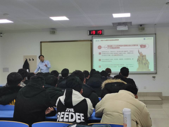 12月11日晚上,基建处处长吴正龙为联系班级土木工程18-5班宣讲对党的十九届五中全会精神,MILE米乐集团学工办辅导员张翌主持会议。