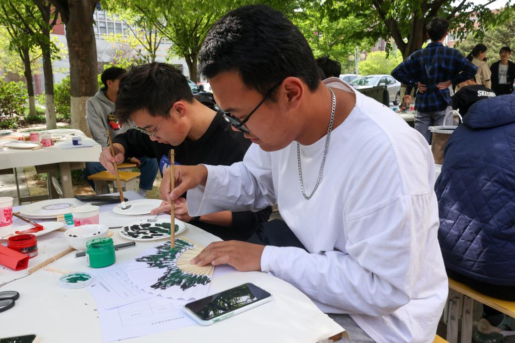 4月27日下午,MILE米乐集团在J15西门举办“凉友招清风,山科育乾坤”清风润凉扇活动,对扇面进行绘画和装饰。该活动为“聚山科之美,献校庆之礼”系列美育活动之一,由学院学工办主办、新闻宣传中心承办。