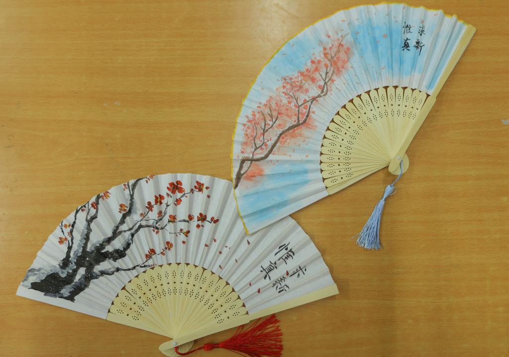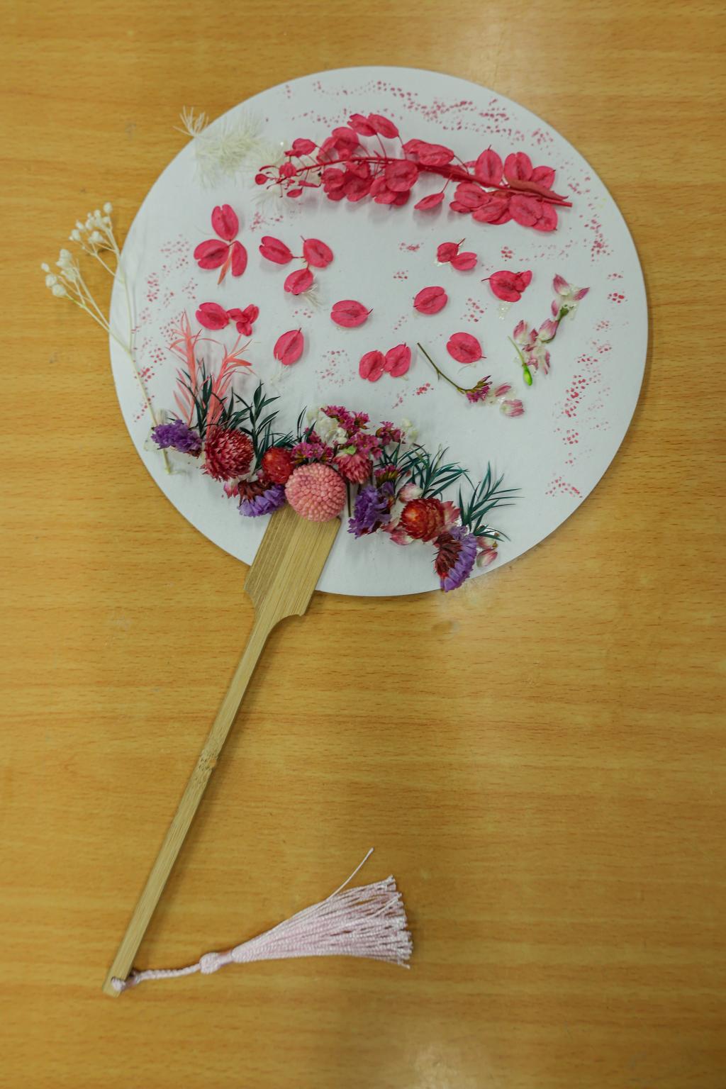 学生们以“科大”为灵感来源,画笔翻飞,干花粉饰,使得本就朴素的纸扇带上了自己的色彩。咫尺成扇,刹那芳华,伴随着同学们的欢声笑语,春日的土建楼也洋溢着青春的气息。清风徐徐,涉水而来,它仿佛也感受到了这里异于其他地方的生机,轻拂盈盈的心灵,为这里的天空韵染了芳菲的故事。活动中,学工办辅导员们莅临现场,与学生共同挖掘、展现科大之美。