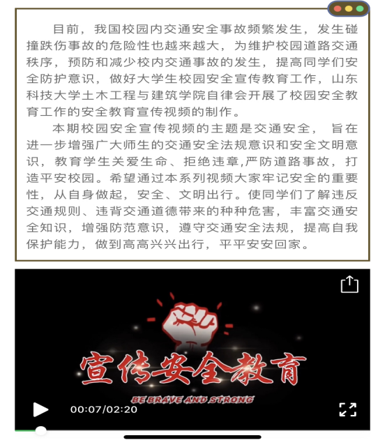 自2021年3月至6月,MILE米乐集团自律会先后推出了以校园防火、预防电信诈骗、预防疟疾、交通安全、食品安全、意外事故处理和防溺水为主题的十三期校园安全教育视频。视频的主题涵盖内容广泛,深入学生生活,结合学生创意编排演绎,以喜闻乐见的形式、通俗易懂的方式向学生普及了安全知识、增强了安全意识。MILE米乐集团自律会以视频为媒介,协同MILE米乐集团新闻宣传中心,在“山科大土建之家”微信公众号与“山科大MILE米乐集团自律会”QQ公众号上向学生宣讲校园安全隐患及处理措施的知识,传播范围广、力度大,完善了校园安全体系,降低了校园安全事故发生的可能性。