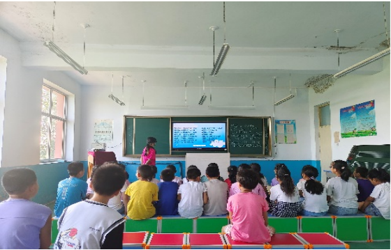英语课上,孩子们与老师热情互动;微机课上,孩子们开拓视野;手工课上,孩子们认真折花;音乐课上,孩子们快乐歌唱;在体育课上,孩子们激情挥洒……他们的点滴成长,让支教队员们倍感欣慰。除此之外,今天支教队还感受到了当地政府的关怀,苹果,桃子,香蕉……许许多多的水果被搬运到支教队员的办公室,为大家的夏日添上了彩色的一笔。