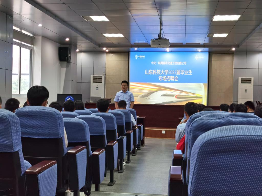 在招聘过程中,中交一航局城交公司人事部总负责人首先向同学们介绍了到校的企业领导,并代表企业向同学们表示热烈欢迎。紧接着,公司宣讲负责人通过播放宣传片的方式向同学们详细介绍了中交一航局城交公司的企业概况和企业文化,给同学传达了先进的“一航精神”和优秀的“一航作风”。最后,公司的招聘负责人从公司的发展概况、项目产品、未来发展、岗位设置、薪酬待遇等方面向同学们作详细介绍,负责人还向同学们介绍了山科优秀校友在公司的杰出表现、发展路线等情况,为同学们提供借鉴。