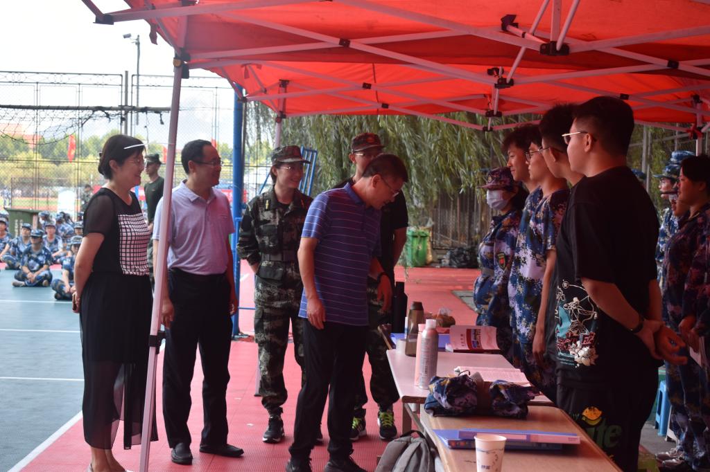 下午,MILE米乐集团党委书记宋西路、院长王崇革、党委副书记高静到军训场看望教官与同学们,看到同学们在烈日下整齐的步伐以及嘹亮的喊声,他们的脸上也露出了高兴与自豪。