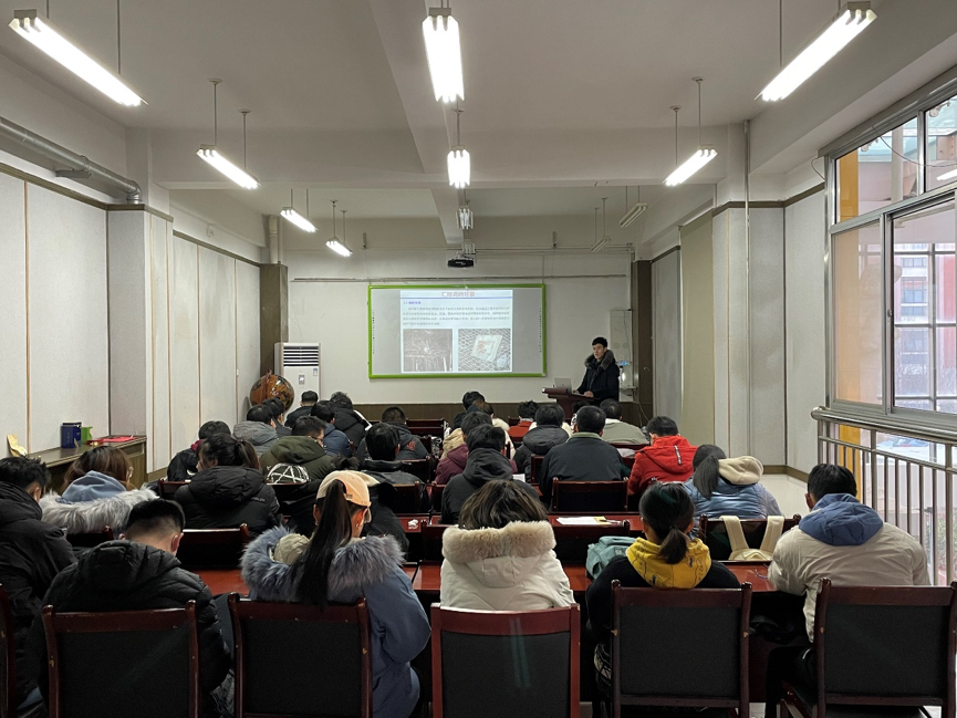 活动中,亓传德从调研背景、锚杆腐蚀原理分析、青岛地区锚杆锈蚀特征分析、青岛地区工程锚杆防腐处理四个方面展开,结合青岛地铁3号线典型案例分析,与同学们对报告内容进行深入探讨。亓传德向同学们介绍了青岛地区对砼耐久性和隧道防、排水质量方面的高要求,详细描述了实际工程案例中锚杆腐蚀可能造成的质量安全问题,同时介绍了一些新型锚杆防腐工艺,包括采用新型材料防腐锚杆和新注浆工艺。最后亓传德向大家讲解了预应力锚杆支护功效、施工过程力学机制和工程安全定量评价这三个已经突破的科学问题,分享了施工过程中合理布置锚杆对中支架、锚杆头部安装防腐帽和永久性支护锚杆防腐涂层等目前常用的锚杆防腐处理措施。