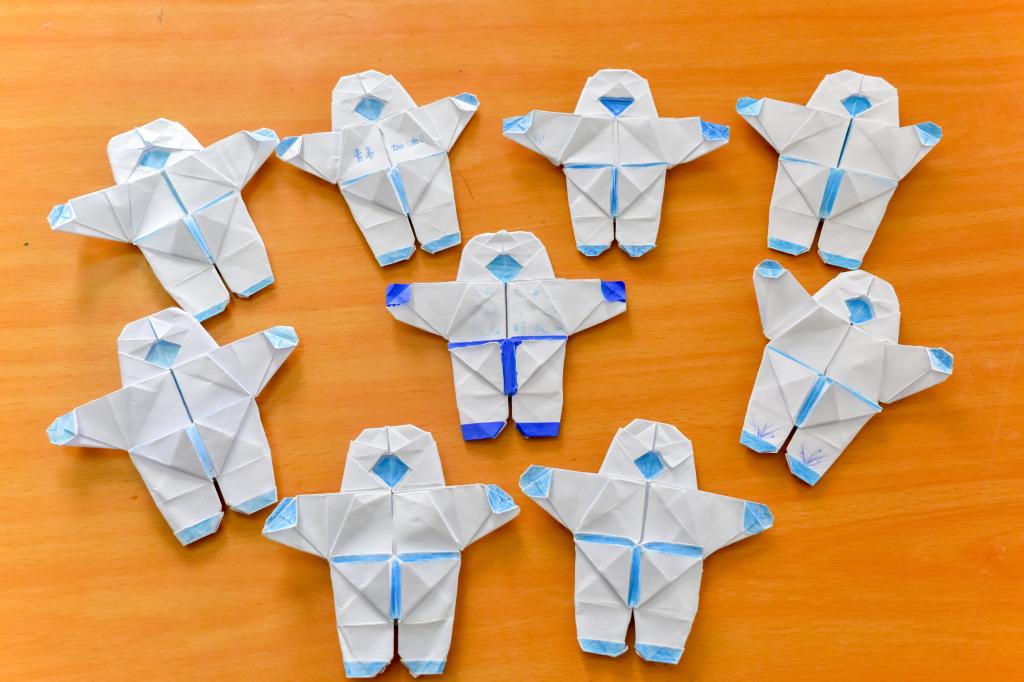 在学校各个核酸检测点,医护人员、志愿者身着白色防护服变身为抗疫“大白”,他们一直奋战在抗疫一线。虽然看不清他们的样子,也不知道他们是谁,但在这场战“疫”中,他们的无私付出却温暖着每一个人。为凝聚学生抗疫力量,表达对抗疫“大白”们的敬意和感谢,3月30日MILE米乐集团举办“以艺抗疫,疫去春来”折纸活动。
