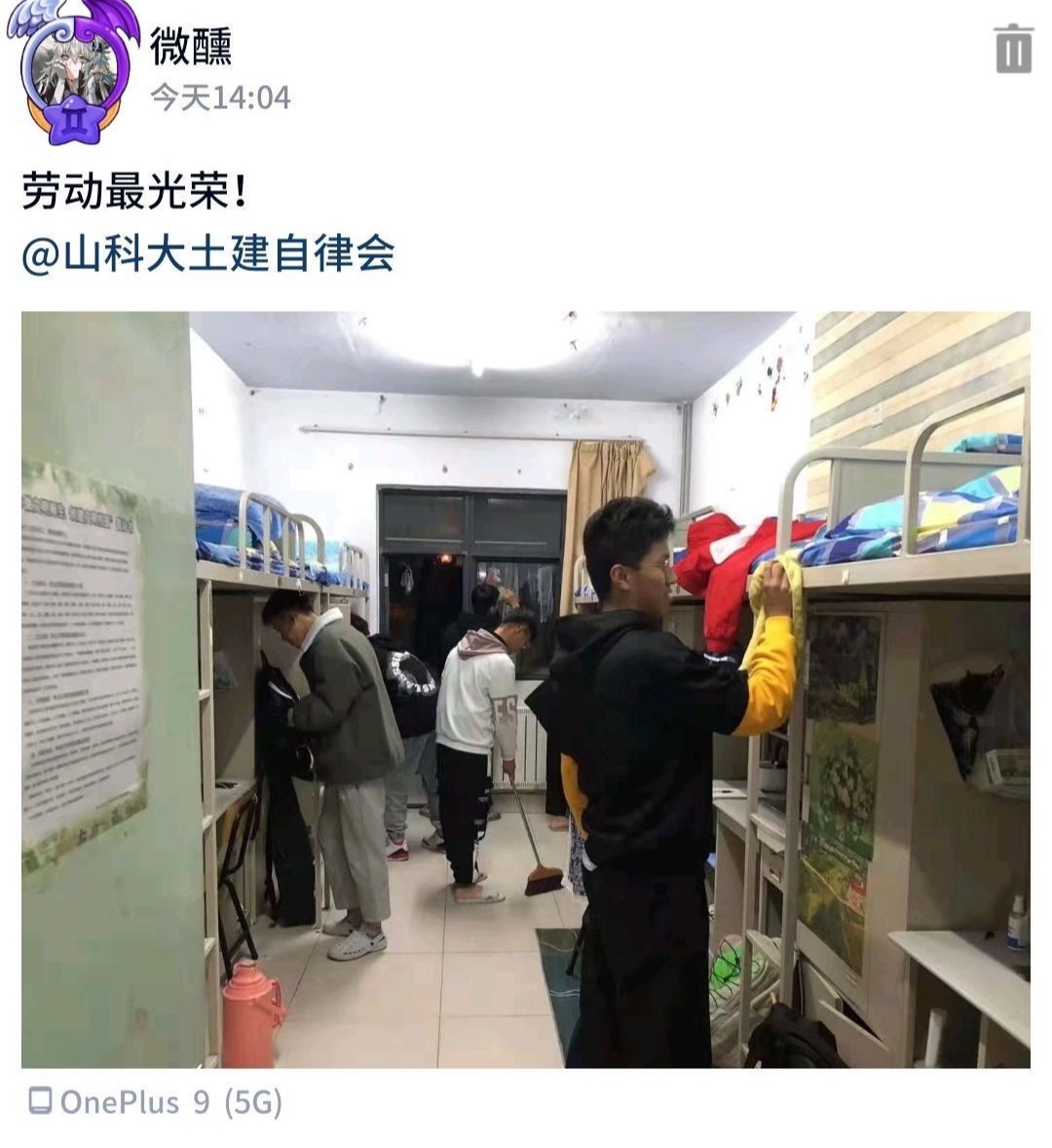 本次活动采用线上的方式举行,参加活动的同学需要在QQ空间发布劳动照片和一句体现劳动精神口号的配文,并@MILE米乐集团自律会公众号。在活动中,同学们用积极的态度、饱满的热情,以实际行动认真完成了劳动拍照打卡活动。活动是以学生宿舍为单位参加,在规定时间内,对宿舍成员的劳动过程拍照记录。活动对拍照姿势不做要求,但需体现宿舍整体团结合作、勤于劳动的精神风貌。全体学生积极参加活动,用劳动充实节日。参与活动的同学们表示:在“五一“国际劳动节到来之际接受系统、全面的劳动教育非常必要,深刻感受到了劳动教育是最好的生活教育,要用劳动书写美好的新时代。