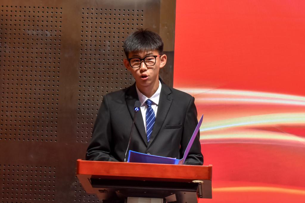 获奖学生代表王俊博发言,对长期以来关心莘莘学子的设奖企业和学校学院老师表达感谢,表示会牢记习近平总书记对青年人的嘱托,心系赤子之情、肩负复兴之梦、胸怀弄潮之志,在实干争先、奋勇当先的生动实践中绽放青春风采。