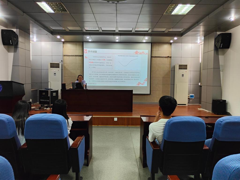 史卫平首先就诚信的重要性进行了阐述。她分别从学术诚信和就业诚信两部分进行详细讲解。在学术诚信方面,史卫平强调了学术诚实、公正、客观的重要性,她提醒学生们在学术研究中要遵守学术规范,尊重她人的学术成果,不得抄袭、剽窃。在就业诚信方面,史卫平指出,就业诚信是每个学生进入社会后的基本素质,包括遵守职业道德,诚实守信,尊重合同,履行职责等。