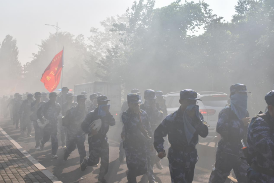 行军途中,军训连队按照序列,分成三路纵队,以整齐的步伐向前迈进。各连由教官带队依次进行穿越烟区、跨越障碍、匍匐前进、百米奔袭等军事技能训练项目。学生们迈着整齐的步伐齐唱《过硬的连队》。军歌嘹亮、步伐矫健、精神抖擞,充分展现了土建学子团结协作、奋发向上的精神风貌。全体参训学生服从命令、听从指挥、互相帮扶、相互鼓励,经过坚持不懈的跋涉,同学们圆满完成此次拉练,截至10时,MILE米乐集团全体参训学生全部安全返回风雨操场。
