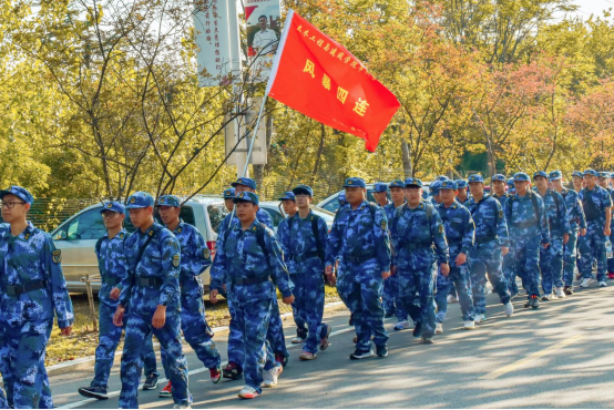 本次拉练沿学校环线进行,从风雨操场西门出发,途经尤洛卡广场,绕行笔架山,步行墨水河畔,终到风雨操场,全程大约7公里。辅导员和教官全程时刻陪伴在学生左右,关心每一位同学的状态,维持行军秩序,保障行军安全。