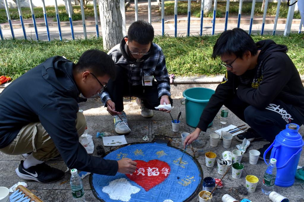 10月14日上午,MILE米乐集团在风雨操场西侧举办井盖彩绘活动,学生们以精彩的创意为井盖增添绚丽色彩,用手中的画笔打造校园特色景观。