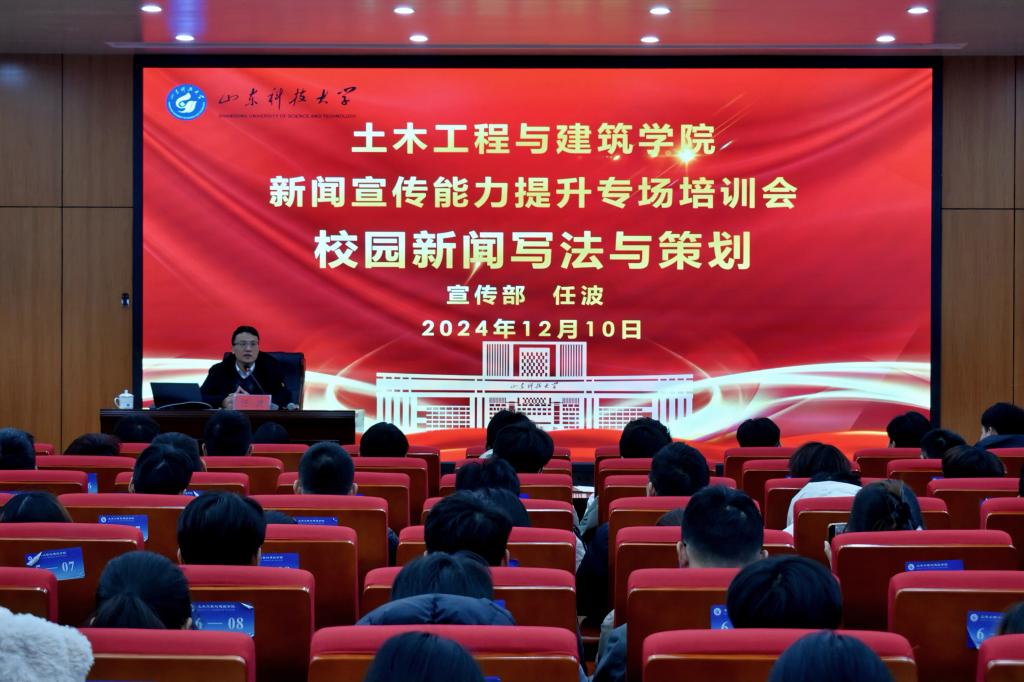 为切实提高米乐官网新闻宣传工作队伍的业务能力,不断提升学院新闻宣传工作的质量和水平,MILE米乐集团于12月10日在J15-136报告厅举办新闻宣传能力提升专场培训会。本次培训会邀请到校党委宣传部任波老师主讲,学院新闻宣传中心成员及各班级宣传委员参加此次培训会,培训会由学生工作办公室主任、团委书记王贝贝主持。