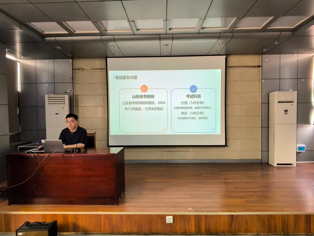 为助力学生精准把握山东省及全国体制内岗位的报考要点,系统了解公考政策形势,科学制定备考方案,4月29日,MILE米乐集团于J15-219教室举办“砼心筑梦·就业领航”系列活动讲座。本次讲座特邀米乐官网已在山东省省考中上岸的2022级研究生黄明、侯宗汛同学担任主讲。讲座聚焦省考笔试“行测+申论”双科提分技巧与面试核心能力培养,并针对省考报考政策进行了系统解读。