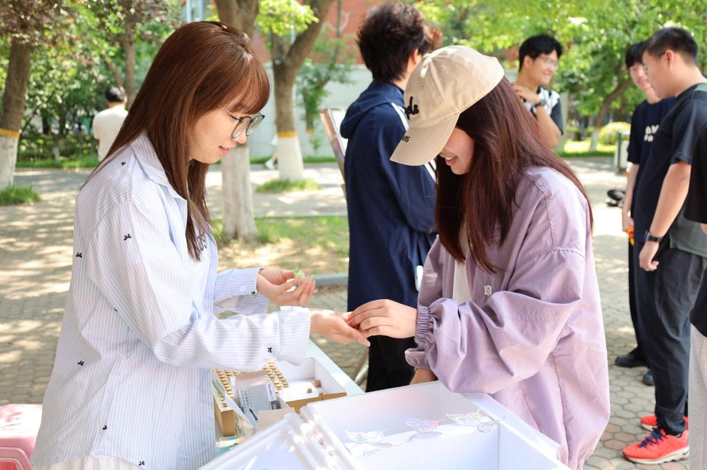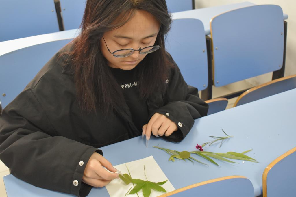 5月18日,“打开五感,感知美好”主题活动在J7-208教室开启。活动负责人通过植物手工贺卡制作——采集校园内的枫叶、银杏叶、绣球花瓣等植物标本,搭配彩笔与卡纸,引导大家将自然元素转化为创意表达。有同学用渐变叶片拼贴出落日下的教学楼轮廓,有人以花瓣为芯创作立体花束。制作时此起彼伏的交流声中,“夏天的蝉鸣”“图书馆前的紫藤花”等校园记忆随着指尖的创作娓娓道来。
