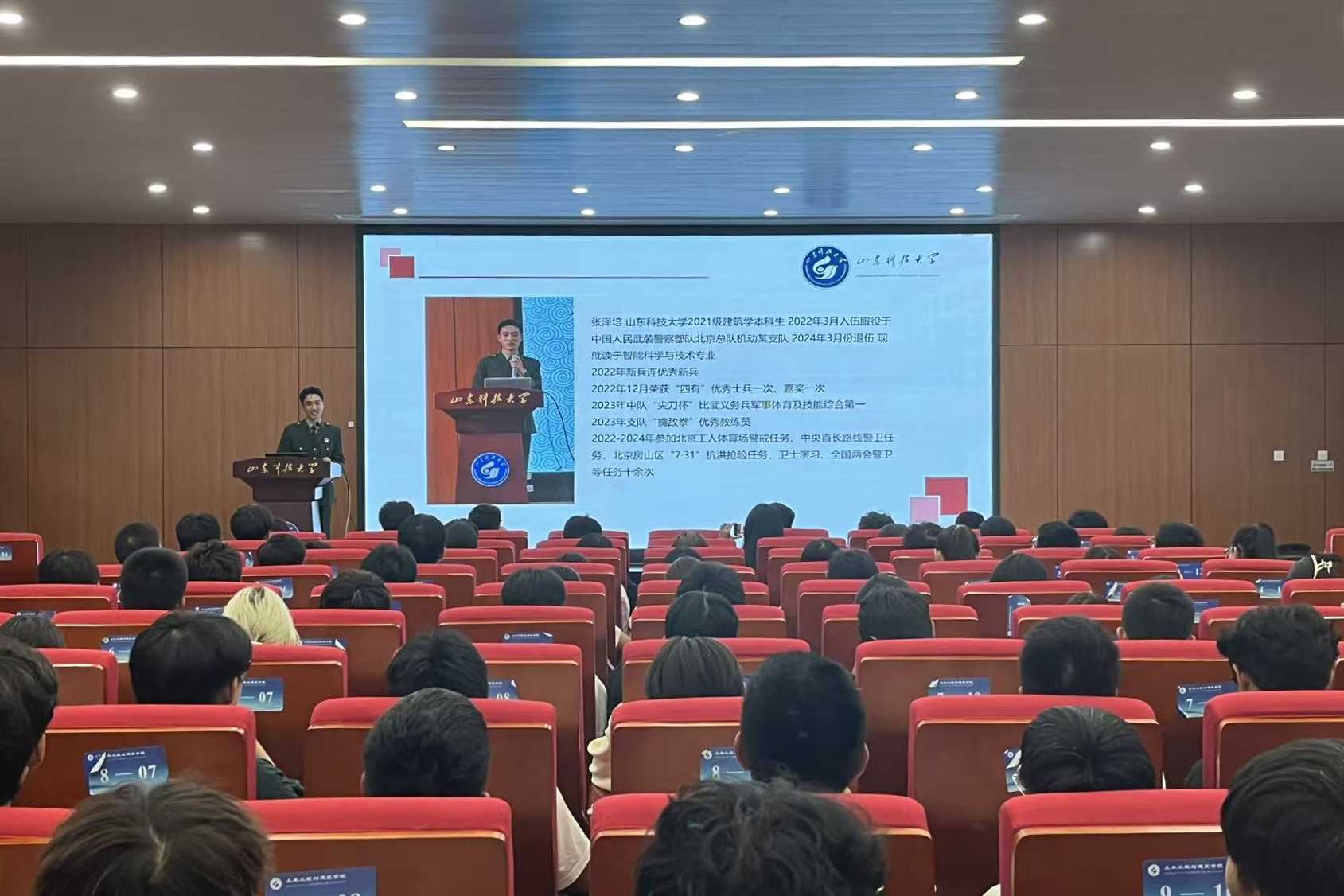 新时代青年的担当不仅体现在书桌前的奋笔疾书,更闪耀在祖国最需要的地方。此次分享会展现了军人坚韧不拔、忠诚奉献的精神力量,在土建学子心中种下国防种子,军人精神在校园生根发芽,助力更多学子在军旅与学业道路上双向奋进,书写青春华章。