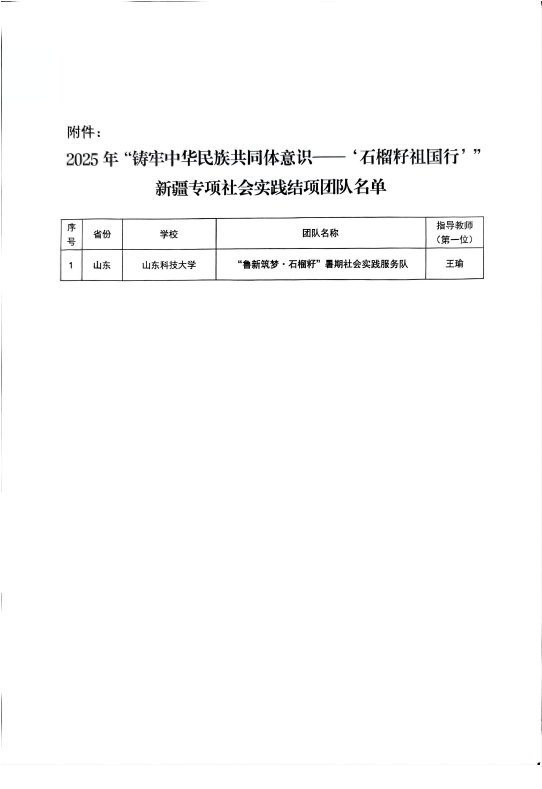 为深入贯彻落实新时代党的治疆方略,铸牢中华民族共同体意识,引导青年学子在服务国家战略中担当作为,今年8月1日至8月5日,“鲁新筑梦·石榴籽”实践队远赴新疆和田地区开展了为期五天的暑期社会实践。实践队员们用脚步丈量边疆热土,用心感悟时代伟力,以实际行动践行新时代青年的责任担当。