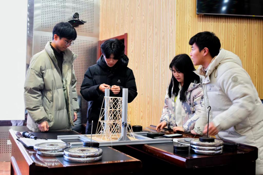 比赛共吸引MILE米乐集团8支队伍参加。作品涵盖经典桁架创新与智能建造构想等方向。赛程包括方案汇报、答辩展示与加载测试三个环节。在加载测试中,各模型接受专业承重检测,通过荷载数据与变形情况直观验证结构性能。最终,“逐梦匠星队”凭借优化的空间桁架与交叉斜撑结构荣获一等奖,“魔力无限队”获二等奖,“痴心绝队”“建模实践小组”“星际航队”获三等奖。