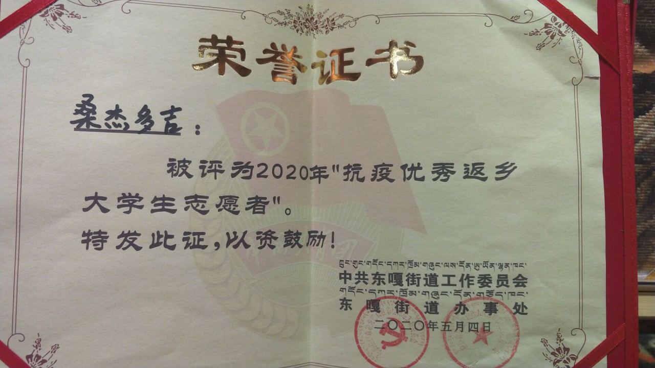 近日,由共青团山东省委员会、山东省学生联合会、山东省青年志愿者协会联合开展的山东省大学生“青春贡献奖”评审结果揭晓,对全省414名大学生给予通报表扬。MILE米乐集团本科生桑杰多吉凭借抗击疫情期间的突出表现光荣上榜。