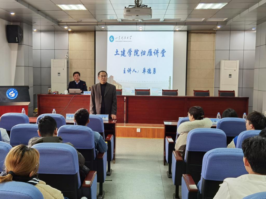 会后,校友论坛“归雁讲堂”于J15-219报告厅举行,邀请到单德勇作报告。单德勇分享自身成长经历和创业故事,向学弟学妹们提出三点建议:一要将专业理论付诸于社会实践,在实践中获真知;二要有理想、有目标,结合自己实际确定发展方向;三要扬长避短,挖掘和展现个人优势。现场师生积极提问,咨询山东聚源项目管理有限公司招聘需求,表达求职意愿;单德勇以学长的身份耐心解答,结合公司实际进行指导。
