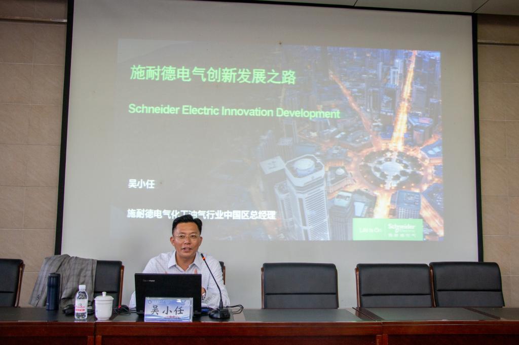 吴小任分别从数字化与电气化、能源+自动化、云终端、运营与维护等方面展现了施耐德电气创新发展之路,通过具体案例论证创新一直是施耐德电气主旋律。施耐德电气进入中国市场以来,从本土化制造发展至本土化服务,而今更开始了“中国原创”的本土化基础研发创新,在实践中与中国的发展融为一体。报告中,吴小任围绕“为祖国健康工作五十年”“长期主义,价值共生”“STAY YOUNG”三部分分享了自身工作经历,提出要拥有健康的身体、优良的品德、豁达的心态;要树立长期主义的价值观,创造持久真实的价值;要将自己的兴趣点与擅长点相结合,做到终身学习。报告会最后,同学们积极提问,吴小任细致解答。